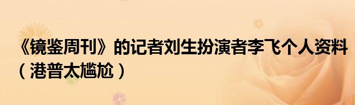 大家好,小安來為大家解答以上的問題《鏡鑒周刊》的記者劉生扮演者李飛個人資料,港普太尷尬這個很多人還不知道,現在讓我們一起來看看吧!