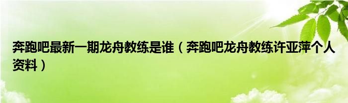 大家好,綜合小編來為大家講解下。奔跑吧最新一期龍舟教練是誰,奔跑吧龍舟教練許亞萍個人資料很多人還不知道,現在讓我們一起來看看吧!