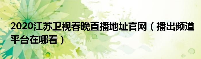 大家好,小安來為大家解答以上的問題2020江蘇衛視春晚直播地址官網,播出頻道平臺在哪看這個很多人還不知道,現在讓我們一起來看看吧!