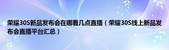 大家好,綜合小編來為大家講解下。榮耀30S新品發布會在哪看幾點直播,榮耀30S線上新品發布會直播平臺匯總很多人還不知道,現在讓我們一起來看看吧!