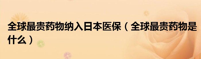 大家好,綜合小編來為大家講解下。全球最貴藥物納入日本醫(yī)保,全球最貴藥物是什么很多人還不知道,現(xiàn)在讓我們一起來看看吧!