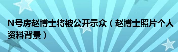 大家好,綜合小編來為大家講解下。N號房趙博士將被公開示眾,趙博士照片個人資料背景很多人還不知道,現(xiàn)在讓我們一起來看看吧!