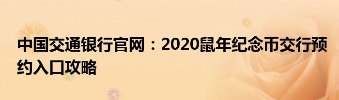 中國(guó)交通銀行官網(wǎng):2020鼠年紀(jì)念幣交行預(yù)約入口攻略