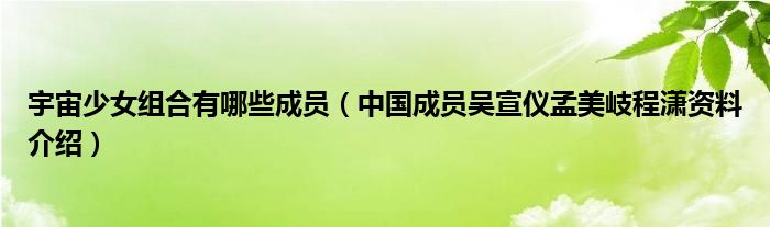 大家好,小安來為大家解答以上的問題宇宙少女組合有哪些成員,中國成員吳宣儀孟美岐程瀟資料介紹這個很多人還不知道,現在讓我們一起來看看吧!