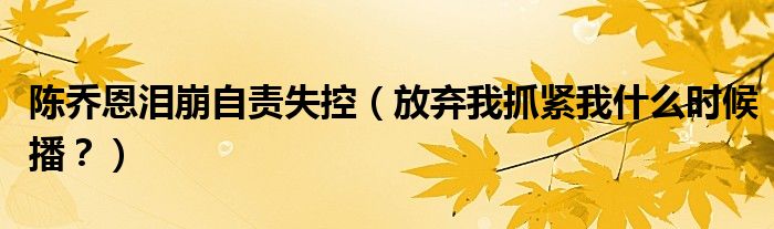 大家好,小安來(lái)為大家解答以上的問題陳喬恩淚崩自責(zé)失控,放棄我抓緊我什么時(shí)候播?這個(gè)很多人還不知道,現(xiàn)在讓我們一起來(lái)看看吧!