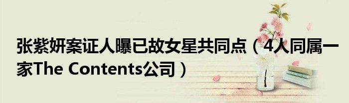 大家好,小安來(lái)為大家解答以上的問(wèn)題張紫妍案證人曝已故女星共同點(diǎn),4人同屬一家The Contents公司這個(gè)很多人還不知道,現(xiàn)在讓我們一起來(lái)看看吧!