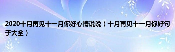 大家好,綜合小編來為大家講解下。2020十月再見十一月你好心情說說,十月再見十一月你好句子大全很多人還不知道,現在讓我們一起來看看吧!