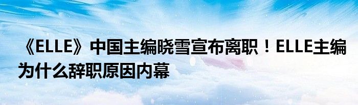 大家好,小安來為大家解答以上的問題《ELLE》中國主編曉雪宣布離職!ELLE主編為什么辭職原因內(nèi)幕這個(gè)很多人還不知道,現(xiàn)在讓我們一起來看看吧!