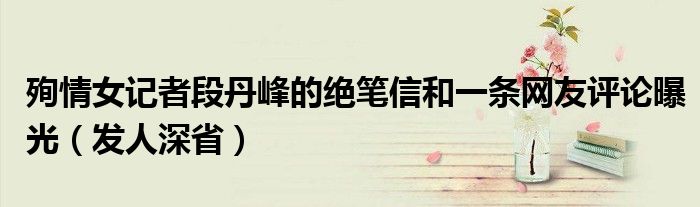 近日,網友的一段評論配女記者段丹峰的絕筆留言引起了人們的關注,讀后發人深省。