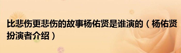大家好,綜合小編來為大家講解下。比悲傷更悲傷的故事楊佑賢是誰演的,楊佑賢扮演者介紹很多人還不知道,現在讓我們一起來看看吧!