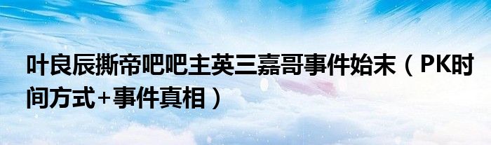 大家好,小安來為大家解答以上的問題葉良辰撕帝吧吧主英三嘉哥事件始末,PK時間方式+事件真相這個很多人還不知道,現在讓我們一起來看看吧!