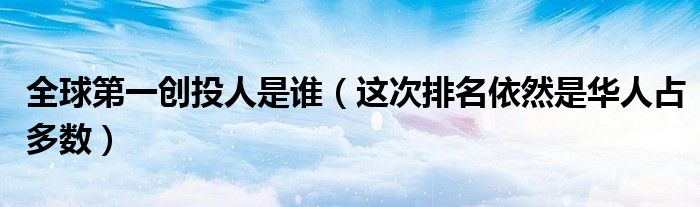 大家好,綜合小編來為大家講解下。全球第一創投人是誰,這次排名依然是華人占多數很多人還不知道,現在讓我們一起來看看吧!