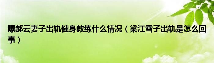 大家好,小安來為大家解答以上的問題曝郝云妻子出軌健身教練什么情況,梁江雪子出軌是怎么回事這個很多人還不知道,現(xiàn)在讓我們一起來看看吧!