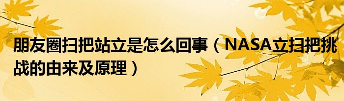 大家好,綜合小編來為大家講解下。朋友圈掃把站立是怎么回事,NASA立掃把挑戰的由來及原理很多人還不知道,現在讓我們一起來看看吧!