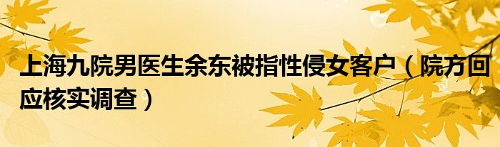 大家好,小安來為大家解答以上的問題上海九院男醫生余東被指性侵女客戶,院方回應核實調查這個很多人還不知道,現在讓我們一起來看看吧!