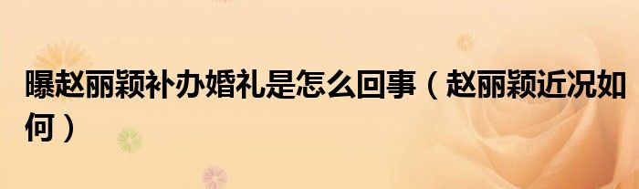 大家好,小安來為大家解答以上的問題曝趙麗穎補辦婚禮是怎么回事,趙麗穎近況如何這個很多人還不知道,現在讓我們一起來看看吧!