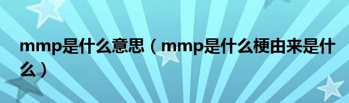 大家好,綜合小編來為大家講解下。mmp是什么意思,mmp是什么梗由來是什么很多人還不知道,現在讓我們一起來看看吧!