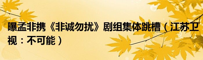大家好,小安來為大家解答以上的問題曝孟非攜《非誠勿擾》劇組集體跳槽,江蘇衛(wèi)視:不可能這個很多人還不知道,現(xiàn)在讓我們一起來看看吧!