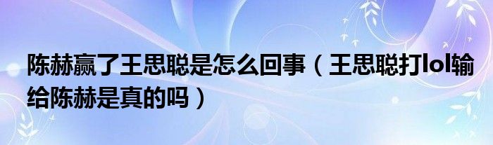 大家好,小安來為大家解答以上的問題陳赫贏了王思聰是怎么回事,王思聰打lol輸給陳赫是真的嗎這個很多人還不知道,現在讓我們一起來看看吧!