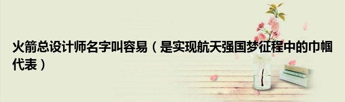 大家好,綜合小編來為大家講解下。火箭總設計師名字叫容易,是實現航天強國夢征程中的巾幗代表很多人還不知道,現在讓我們一起來看看吧!