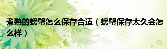 煮熟的螃蟹怎么保存合適如果當(dāng)天晚上沒(méi)吃完的話,可待其涼透后裹上保鮮膜放冰箱內(nèi)冷藏,有條件的話也可以冷凍。
