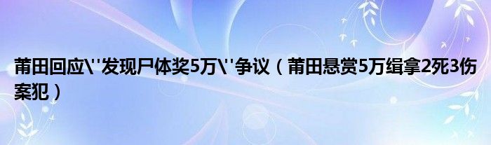 大家好,綜合小編來為大家講解下。莆田回應"發現尸體獎5萬"爭議,莆田懸賞5萬緝拿2死3傷案犯很多人還不知道,現在讓我們一起來看看吧!