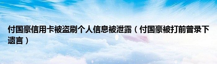大家好,綜合小編來為大家講解下。付國豪信用卡被盜刷個人信息被泄露,付國豪被打前曾錄下遺言很多人還不知道,現(xiàn)在讓我們一起來看看吧!