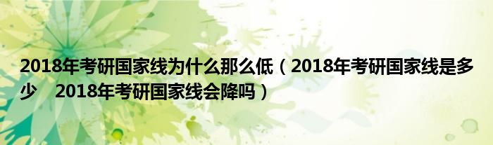 大家好,綜合小編來為大家講解下。2018年考研國家線為什么那么低,2018年考研國家線是多少 2018年考研國家線會(huì)降嗎很多人還不知道,現(xiàn)在讓我們一起來看看吧!