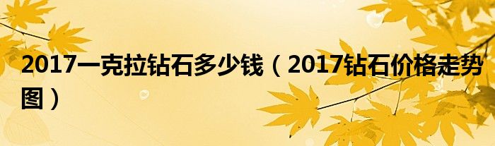 大家好,綜合小編來為大家講解下。2017一克拉鉆石多少錢,2017鉆石價(jià)格走勢(shì)圖很多人還不知道,現(xiàn)在讓我們一起來看看吧!