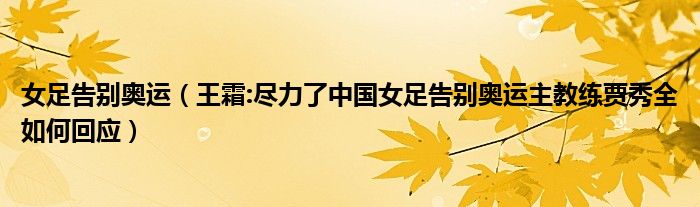大家好,綜合小編來為大家講解下。女足告別奧運,王霜:盡力了中國女足告別奧運主教練賈秀全如何回應很多人還不知道,現在讓我們一起來看看吧!