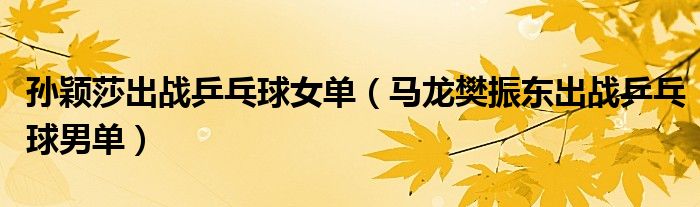 大家好,綜合小編來為大家講解下。孫穎莎出戰乒乓球女單,馬龍樊振東出戰乒乓球男單很多人還不知道,現在讓我們一起來看看吧!