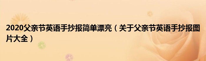 大家好,綜合小編來為大家講解下。2020父親節英語手抄報簡單漂亮,關于父親節英語手抄報圖片大全很多人還不知道,現在讓我們一起來看看吧!