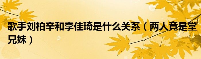 大家好,綜合小編來為大家講解下。歌手劉柏辛和李佳琦是什么關系,兩人竟是堂兄妹很多人還不知道,現在讓我們一起來看看吧!