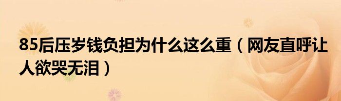 大家好,綜合小編來為大家講解下。85后壓歲錢負擔為什么這么重,網友直呼讓人欲哭無淚很多人還不知道,現在讓我們一起來看看吧!