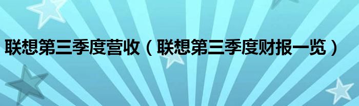 聯(lián)想第三季度營收 聯(lián)想第三季度財報一覽