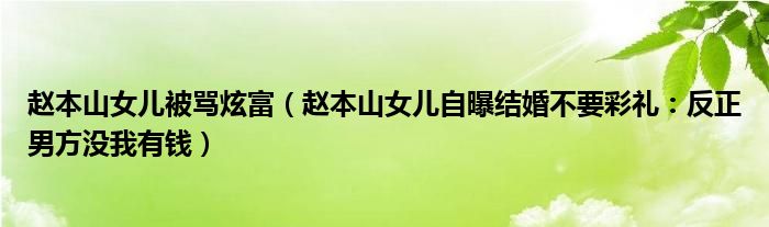 大家好,綜合小編來(lái)為大家講解下。趙本山女兒被罵炫富,趙本山女兒自曝結(jié)婚不要彩禮:反正男方?jīng)]我有錢很多人還不知道,現(xiàn)在讓我們一起來(lái)看看吧!
