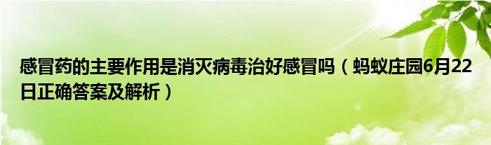 大家好,綜合小編來為大家講解下。感冒藥的主要作用是消滅病毒治好感冒嗎,螞蟻莊園6月22日正確答案及解析很多人還不知道,現在讓我們一起來看看吧!