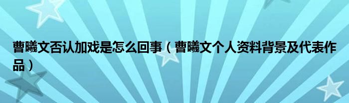 大家好,綜合小編來為大家講解下。曹曦文否認加戲是怎么回事,曹曦文個人資料背景及代表作品很多人還不知道,現在讓我們一起來看看吧!