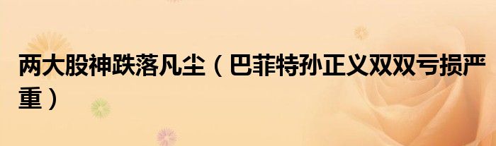 大家好,綜合小編來為大家講解下。兩大股神跌落凡塵,巴菲特孫正義雙雙虧損嚴重很多人還不知道,現在讓我們一起來看看吧!