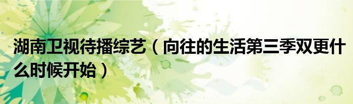 大家好,綜合小編來為大家講解下。湖南衛視待播綜藝,向往的生活第三季雙更什么時候開始很多人還不知道,現在讓我們一起來看看吧!