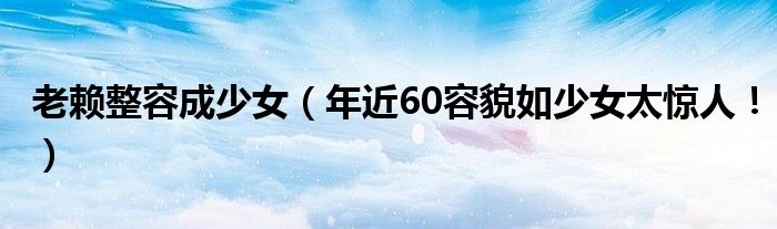 大家好,綜合小編來為大家講解下。老賴整容成少女,年近60容貌如少女太驚人!很多人還不知道,現在讓我們一起來看看吧!