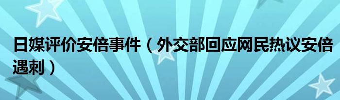 大家好,綜合小編來為大家講解下。日媒評價安倍事件,外交部回應(yīng)網(wǎng)民熱議安倍遇刺很多人還不知道,現(xiàn)在讓我們一起來看看吧!