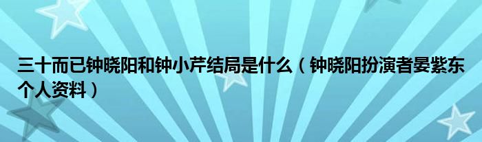 大家好,綜合小編來為大家講解下。三十而已鐘曉陽和鐘小芹結局是什么,鐘曉陽扮演者晏紫東個人資料很多人還不知道,現在讓我們一起來看看吧!