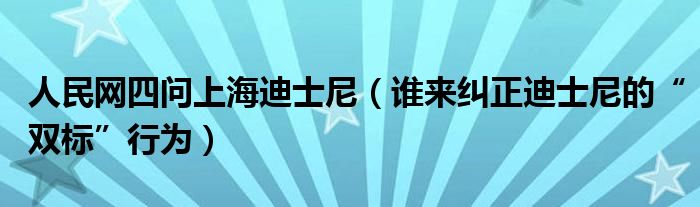 大家好,綜合小編來為大家講解下。人民網(wǎng)四問上海迪士尼,誰來糾正迪士尼的“雙標(biāo)”行為很多人還不知道,現(xiàn)在讓我們一起來看看吧!