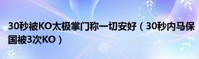 大家好,綜合小編來為大家講解下。30秒被KO太極掌門稱一切安好,30秒內(nèi)馬保國(guó)被3次KO很多人還不知道,現(xiàn)在讓我們一起來看看吧!
