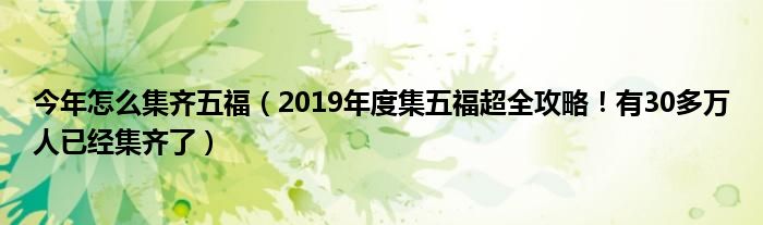 大家好,綜合小編來為大家講解下。今年怎么集齊五福,2019年度集五福超全攻略!有30多萬人已經(jīng)集齊了很多人還不知道,現(xiàn)在讓我們一起來看看吧!