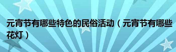 大家好,綜合小編來為大家講解下。元宵節有哪些特色的民俗活動,元宵節有哪些花燈很多人還不知道,現在讓我們一起來看看吧!
