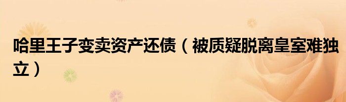 大家好,綜合小編來為大家講解下。哈里王子變賣資產還債,被質疑脫離皇室難獨立很多人還不知道,現在讓我們一起來看看吧!