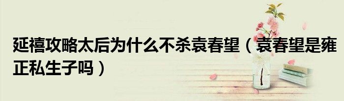 大家好,綜合小編來為大家講解下。延禧攻略太后為什么不殺袁春望,袁春望是雍正私生子嗎很多人還不知道,現在讓我們一起來看看吧!