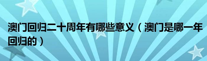 大家好,綜合小編來(lái)為大家講解下。澳門(mén)回歸二十周年有哪些意義,澳門(mén)是哪一年回歸的很多人還不知道,現(xiàn)在讓我們一起來(lái)看看吧!
